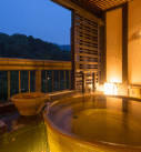 当館では、大浴場を設けず、全ての客室に温泉を引いております。妙高の自然に抱かれた赤倉温泉は、江戸時代から続く名湯の里。その湯は、硫酸塩泉と炭酸水素塩泉が重なる「重層泉」と呼ばれ、肌にやさしく、湯上がりのしっとりとした感触が評判です。