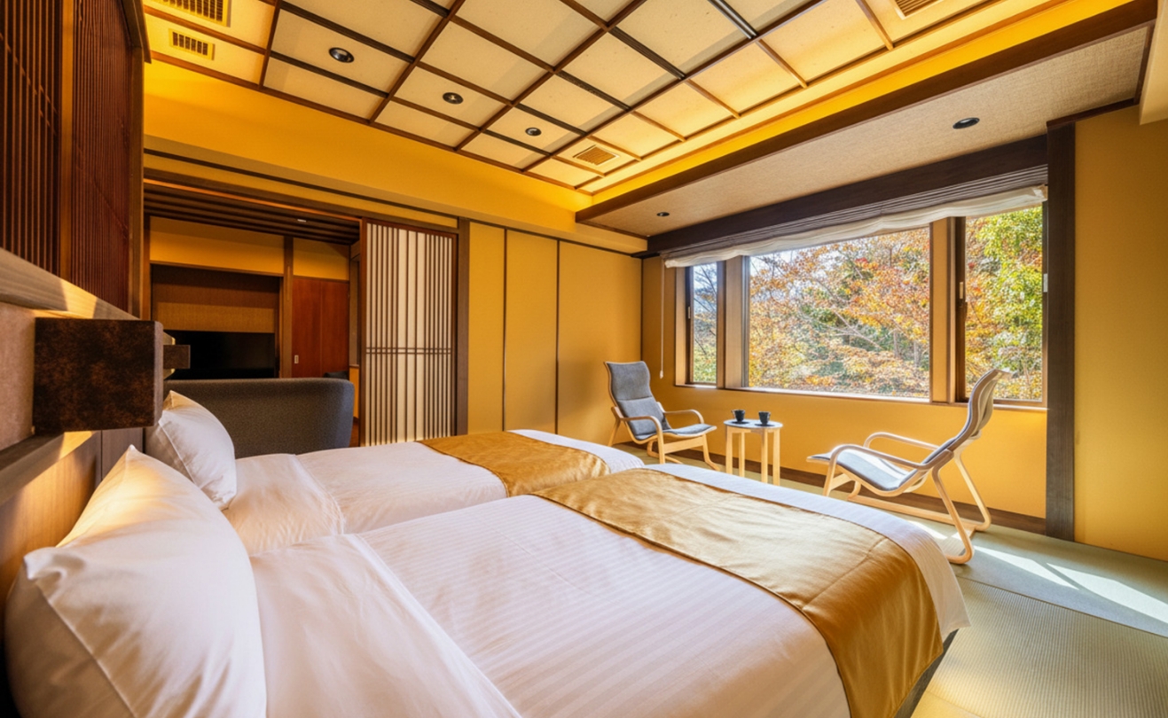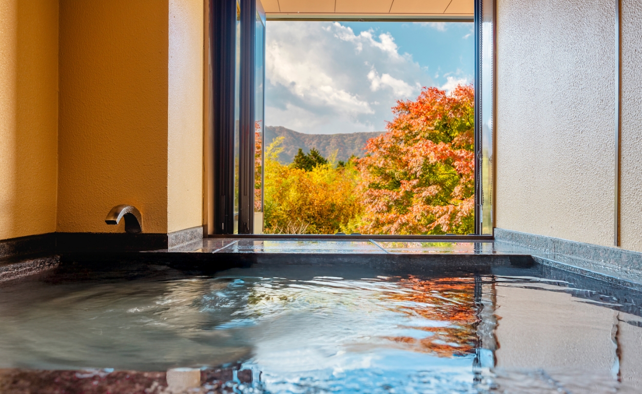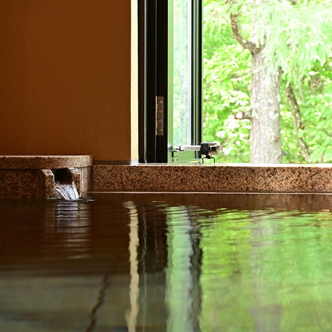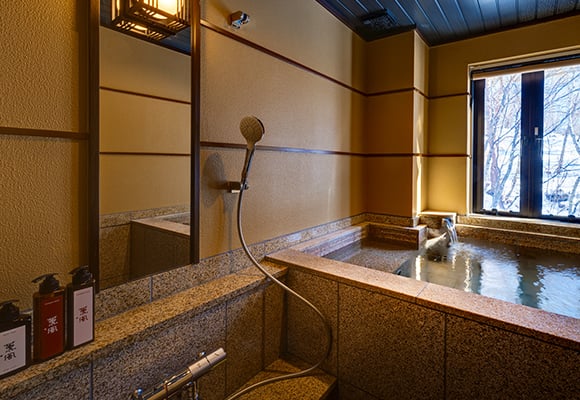 当館では、大浴場を設けず、全ての客室に温泉を引いております。妙高の自然に抱かれた赤倉温泉は、江戸時代から続く名湯の里。その湯は、硫酸塩泉と炭酸水素塩泉が重なる「重層泉」と呼ばれ、肌にやさしく、湯上がりのしっとりとした感触が評判です。